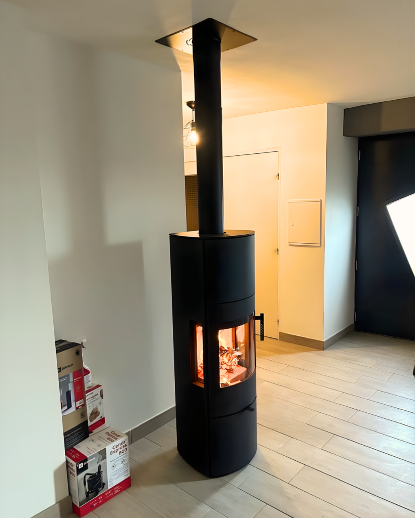 L’expertise de Chaleurfeu a permis une pose précise, respectant scrupuleusement les distances de sécurité et optimisant le tirage du conduit pour une sécurité totale des occupants